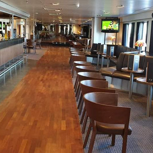 Crossing from Ijmuiden to Newcastle aboard Princess Seaways is like being on a minicruise; well appointed cabins, a range of bars and restaurants and copious amount of exterior deck space. Princess Seaways is one of four similar ships built to the same specification with only her current running companion (King Seaways) with a redesigned forward superstructure. Essentially with all of these ships, cabin accommodation is forward and main facilities aft. Internally Princess Seaways is decorated with an unoffensive calming pallet with the occasional pop of colour. She is bright and spacious with large cavanous halls & corridors meaning she never feels overcrowded. Great ship!